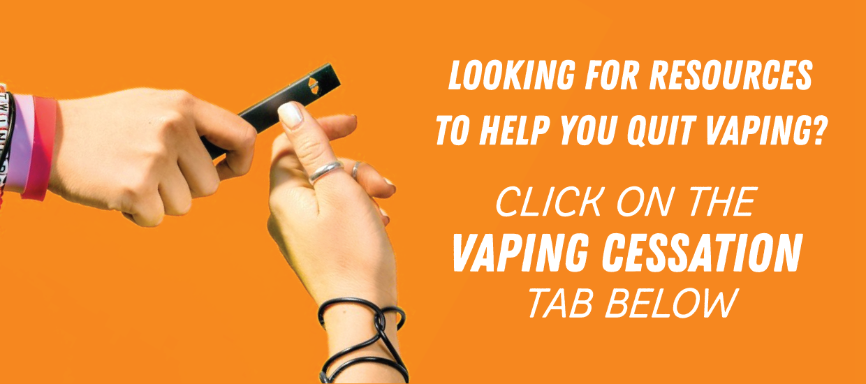 If you want to learn more about the potential impact vaping may have on your health, visit the CDC webpage on vaping. Below are resources available to help you to quit. University of Miami – Tobacco Free Florida AHEC Group Classes Off-Campus Resources These resources can also help you to quit vaping. Tobacco Free Florida’s Quit Your Way offers free counseling over the phone, online, or in person as well as free nicotine patches, gum, and more. Visit https://www.tobaccofreeflorida.com/quityourway/ or call 1-877-U-CAN-NOW for more information.